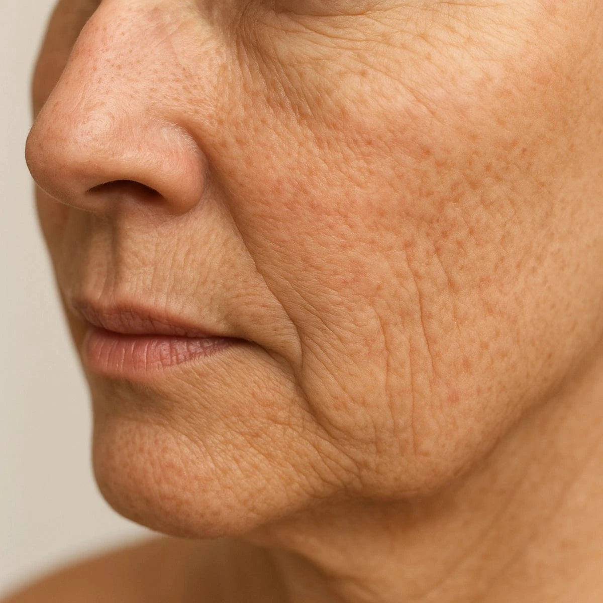 Uneven Skin TextureRough patches and enlarged pores can make wrinkles appear more prominent.