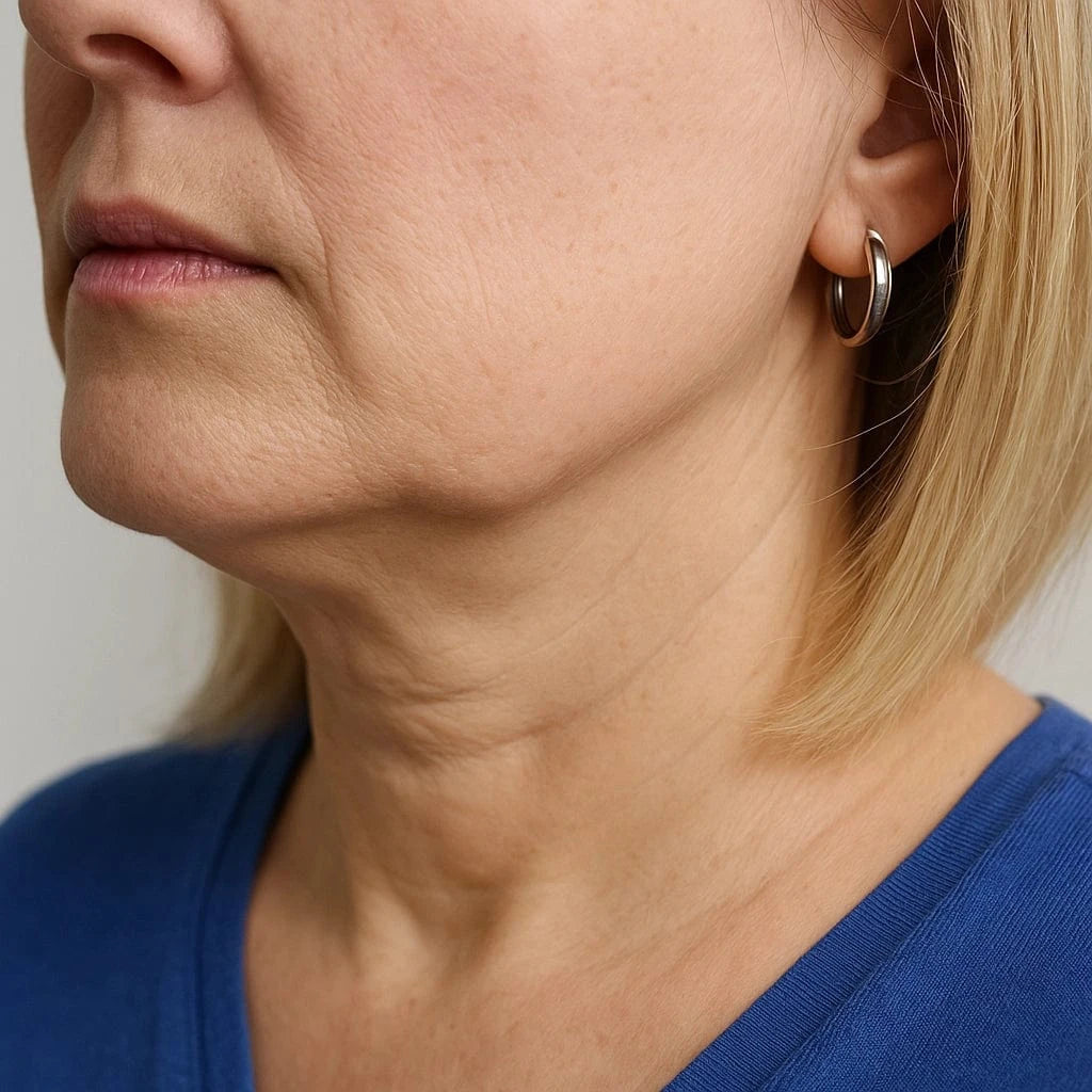 Cheeks and jawline may sag, affecting facial contours and confidence.