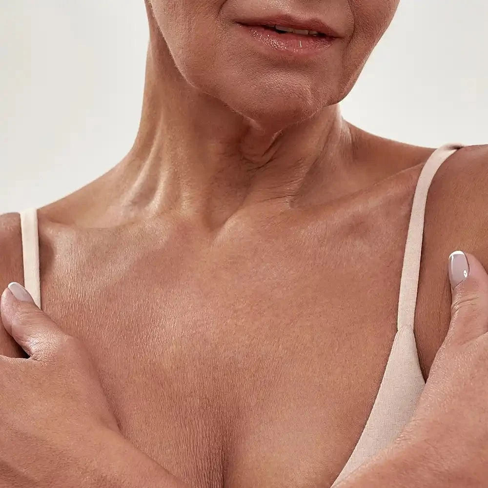 Many people notice sagging or creasing in the delicate chest area, needing targeted support.