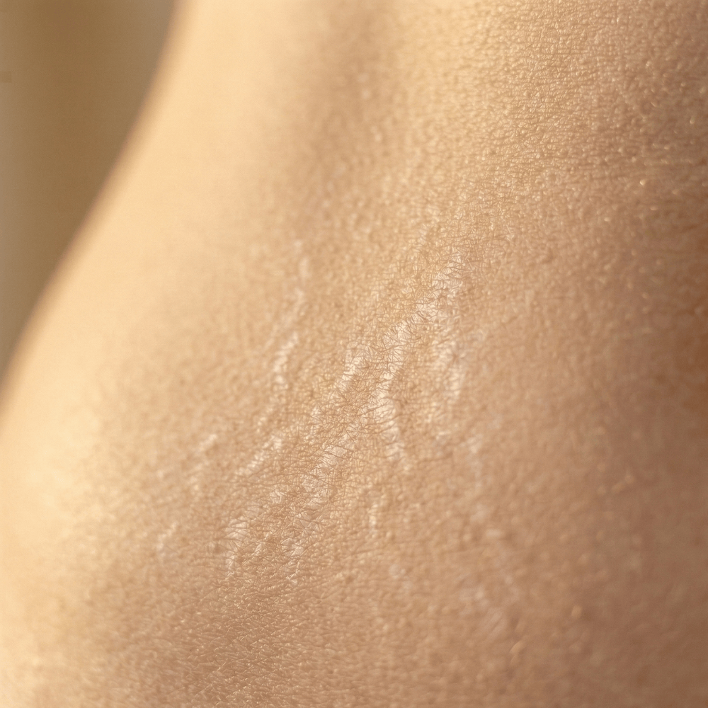 It can't remove stretch marks. Stretch marks are a form of scarring where the underlying connective tissue has been disrupted. No topical product can fully reverse this. What this cream is designed to do is support improvement in the colour, texture, and overall appearance of stretch marks over time, making them less noticeable.